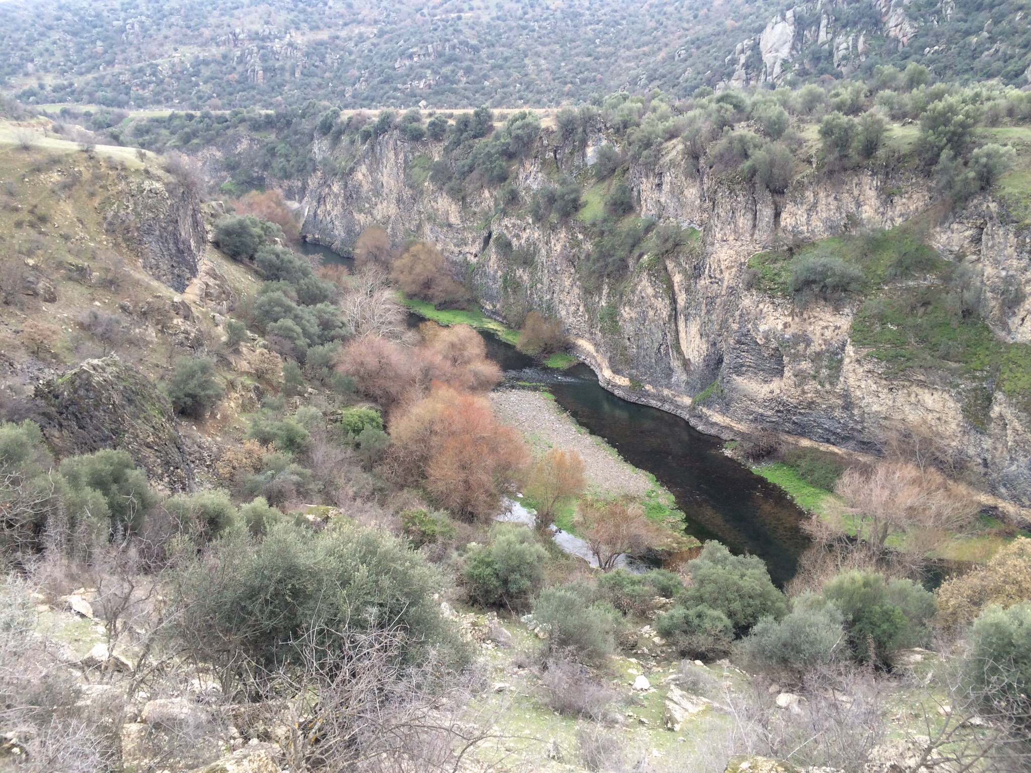 Fotoğraflarımız üç renkli idi; gri kanyon duvarları, kahve söğüt dalları, siyah divlit lavları. (Baharda hele hele sonbaharda empresyonist ressamların tablolarını aratmayan renk cümbüşünü yaşamalı burada). Bir keskin dimdik duvar, dibinde simsiyah Gediz. Kış havasından değil siyahlığı, divlitlerden hiç değil, insanlar boyamış Gediz’i, taaa Uşak’tan beri.
