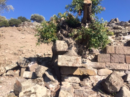 Bizler kurtuluşumuz, istiklalimiz, bayrağımız, toprağımızı kurtarmak için savaşlar verirken müttefik bildiğimiz devletler de bizde ki tarihi zenginliğimizi yağmalamışlar. (Kızmıyorum biz kıymetini bilemezdik.) Demiryolları ne için Ege’de İzmir Aydın cıvarlarında yapılmış. Toparlanan kıymetli eserleri, heykelleri İzmir, Aliağa, Dikili limanlarına taşıyabilmek için. İşte bu antik kentimizde bundan 100-150 yıl önce develer ile düze, eserler ile yüze, kimseyle yüz yüze gelmeden, düze döşenen raylar üzerinde ki dekoviller ile Harrison Ford’un Indiana Jones filmlerinde ki gibi götürülmüş. Bize evlerin temelleri, yolların taşları, agoranın duvarları, antik kentin bulvarları, girişinde ki mezarları kalmış. Onları da bizim yuntdağlıların bir kısmı buranın taşlarını evlerinde kullanmışlar.
